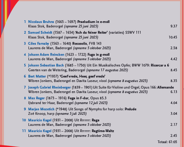 Deze CD bevat opnamen uit de concertserie die in 2025 in de Walburgiskerk te Zutphen werd georganiseerd. De opnames zijn gemaakt Jean van Cleef en Theo Welmers.